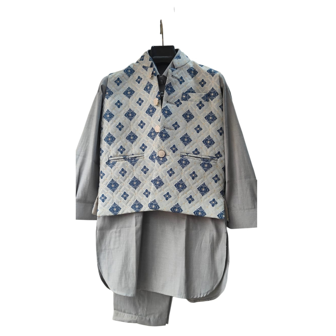 3 Pc Kurta with Pant Pajama and Jacquard Jacket